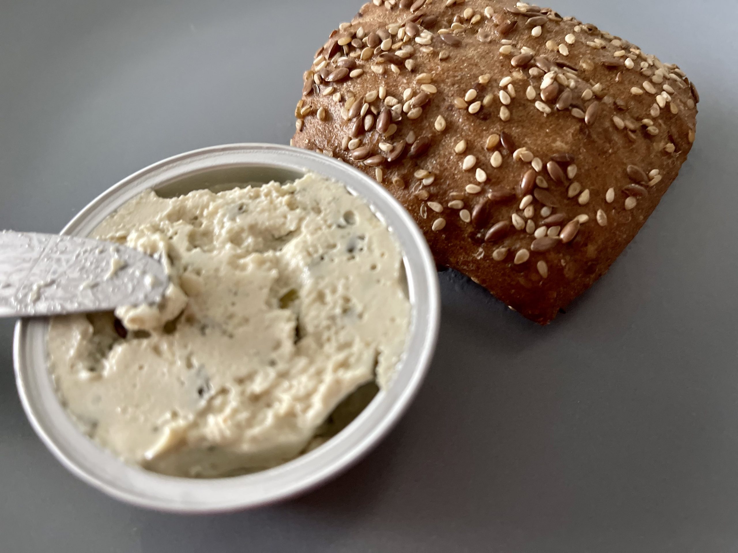 Eine tolle Erfindung: vegetarische Aufstriche auf der Basis von Nüssen und Saaten wie Sonnenblumen- oder Cashewkernen, die mit Kräutern und Öl püriert werden. Sie schmecken nicht nur gut auf Brot sondern sind auch super als Sauce. Den Aufstrich einfach mit heißem Wasser verrühren, schon ist der Saucendip fertig. Am besten Du gibst frische Kräuter und selbst gekochtes püriertes Gemüse dazu.
